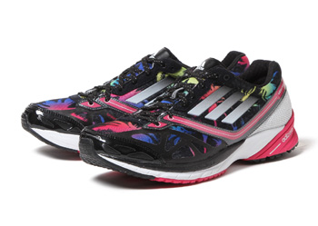 ┗JALホノルルマラソンインスパイアードモデルハワイのパームツリーをイメージしたデザイン。adidas【アディダス】の軽量パフォーマンスシリーズadizero(アディゼロ)のランニングモデル。2012年FALL/WINTERコレクション。1km5分ペースで走るランナーのクッション性と安定性に優れたレース&トレーニング兼用モデル。後足部にクッション性に優れたクッショニングコンパウンドを採用し、着地時の衝撃の緩和。中足部に足の過度なねじれを防ぎ、安定した着地を促進するプロモデレーターを搭載。高反発弾性素材「アディプリーンプラス」を前足部全面に搭載し、蹴り出しを強力に推進。前足部にはグリップ性に優れたコンチネンタルラバーを採用し、路面が強く蹴り出せるようアシスト。フルマラソンをサブ5(5時間以内)、10kmを55分以内を目指すランナーにオススメのモデルです。