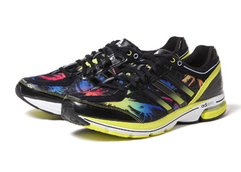 ┗JALホノルルマラソンインスパイアードモデルハワイのパームツリーをイメージしたデザイン。adidas【アディダス】の軽量パフォーマンスシリーズadizero(アディゼロ)のランニングモデル。2012年FALL/WINTERコレクション。1km5分ペースで走るランナーのクッション性に優れたレース&トレーニング兼用モデル。着地時にかかとが動くことでオーバープロネーション(足が過度に内側へ倒れこむ現象)を軽減するFORMOTION(フォーモーション)をかかと部分に搭載。これによって着地をサポート=安定感の増大、ひざへの負担軽減します。高反発弾性素材「アディプリーンプラス」を前足部全面に搭載し、蹴り出しを強力に推進。前足部にはグリップ性に優れたコンチネンタルラバーを採用し、路面が強く蹴り出せるようアシスト。フルマラソンをサブ5(5時間以内)、10kmを55分以内を目指すランナーにオススメのモデルです。