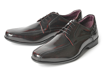 ┗「ドレススニーカー」のコンセプトのもとに誕生したブランド、AIR LIGHT【エアライト】。ドレスシューズの外見に、スニーカー並みの履き心地を実現したビジネスシューズです。アッパーには、イタリアCORIPEL社のボックスカーフレザーを使用。高級感のある光沢と柔軟さを兼ね備えています。ソールには、新開発の素材「テクニフレックス」を使用。軽量で、クッション性、耐摩耗性に優れています。まさに、デザイン性と機能性を合わせもった商品です。こちらは、スワールデザイン。流れるようなステッチワークがロングノーズフォルムの美しさを引き立たせます。