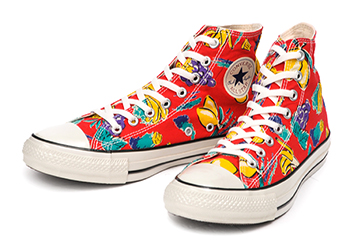 ┗converse【コンバース】定番モデルのオールスター。2013年SPRINGシーズンコレクション。80年代の古着のシャツ等によくみられるフルーツ柄をアッパー全面にプリントしたシーズンカラー。インパクトあるデザインですが、イラストのタッチがレトロな感じで落ち着いた雰囲気が漂う1足。デッドストックをイメージすべく、ミッドソールには艶出し加工や生成りがかったカラーを採用。