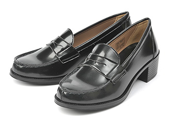 ┗ホーキンスのエントリーシリーズ、レディースローファーです。高さ4.5cmのヒールローファー。素材は、柔らかい合成皮革を使用。クッション性とフィット性も良好。内部のつま先部分は蒸れにくいようにメッシュを使用しております。