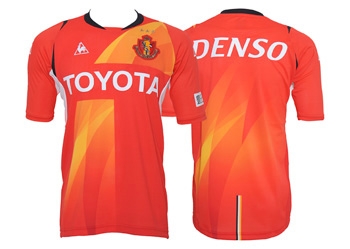 ┗Jリーグ・名古屋グランパスのオーセンティックユニフォーム。2013年シーズンのショートスリーブのホームモデル。こちらは選手が着用するユニフォームと同様のオーセンティック、スポンサーマークも全て取り付けられたフルスポンサーモデルです。右袖にはJリーグ創設20周年記念パッチ付き。