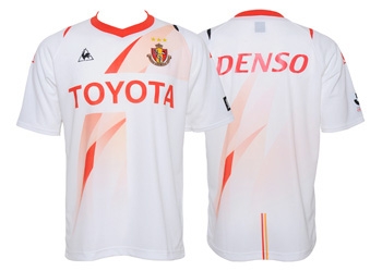 ┗Jリーグ・名古屋グランパスのレプリカユニフォーム。2013年シーズンのショートスリーブのアウェイモデル。観戦用などにオススメの人気NO.1のファンアイテムです。右袖にはJリーグ創設20周年記念パッチ付き。