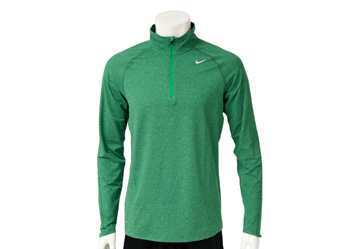┗NIKE【ナイキ】のメンズランニングシャツ。2012年SPRINGシーズンモデル。ハーフジップトップ長袖タイプです。柔らかな肌触りのブラッシュ加工DRI-FIT素材。DRI-FITテクノロジー、吸汗機能により、べたつかず快適性を提供。バックネック中央部に再帰反射コードマネージメントループを使用。