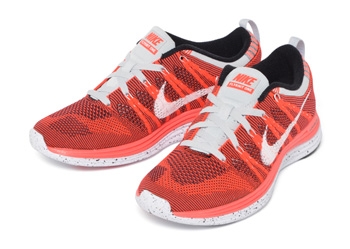 ┗【取扱い店舗限定商品】NIKE RUNNING【ナイキランニング】の2013年SUMMERシーズンモデル。柔軟性や通気性が必要な部分はゆったりと、ホールド力が必要な部分はきつく、といったさまざまな密度で、軽量なポリエステル糸でしっかりと編み込れた革新的アッパーテクノロジー・FLYKNIT(フライニット)。1層構造のアッパーを採用することで、心地よいフィット感を提供。「第2の皮膚」と呼ばれるまでのサポート性とフィッティング性を実現させました。ソールには、衝撃吸収性・軽量性・反発性を備え、まるで月面を歩くかのような履き心地のLUNARLON FORM(ルナロンフォーム)を搭載。NIKE+対応