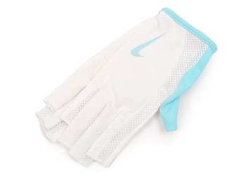 ┗NIKE【ナイキ】のランニンググローブ。吸汗速乾に優れたUVプロテクト素材を使用。日中の紫外線からも保護してくれます。先端がカットされたデザインです。指先を使う動作も着用したままで容易に行えます。