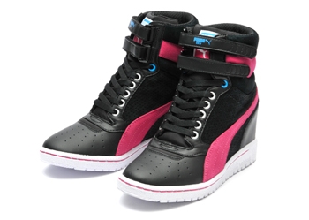┗PUMA【プーマ】のライフスタイルラインのカジュアルモデル。2013年SUMMERシーズンモデル。1980年代にバスケットボールシューズとしてリリースされたプーマスカイをベースに、トレンドのウェッジソールを搭載したシーズンモデル。内蔵された6cmのインヒールにとソール(3cm)と合わせて9cmの高さをプラス。ストリートスタイルにフェミニンさがミックスされた注目のスニーカーです。
