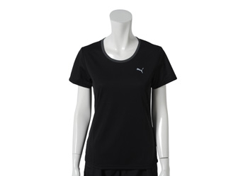 ┗PUMA【プーマ】アパレルの2013年SUMMERシーズンモデル。軽量性に優れたTシャツ。空気の層を裏面のループによって形成。その空気の層により厚みと軽さという、相反するものを実現。またこの厚みによって、透け感も軽減している。ループによる点接触によって、肌の接触面積が小さいことにより、発汗時の肌離れの良さといった相乗効果も実現。25+ UPF(紫外線防止指数)