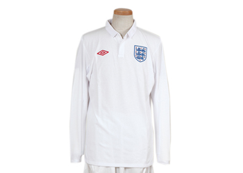 ┗サッカー発祥の地であるイングランド代表の長袖レプリカユニフォーム。2009-2011年モデル。イングランド代表は、スリーライオンズの愛称を持つ、母国以外にも多くのファンを持つ人気チームです。襟付きのレトロなデザインです。