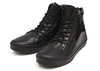 ┗VANS【バンズ】のクラシックラインの2012年FALLコレクション。アッパーに重厚感溢れるレザージャケットをモチーフにしたクラシックスクール。両サイドとヒール部分にジップを配置し、ロックなスタイルに仕上がっております。サイドパネルにはスエードを取り入れることでワークブーツのような雰囲気をプラス。エンボス加工を施したミッドソールもポイントです。