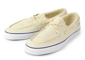┗VANS【バンズ】のクラシックラインのデッキシューズ・ZAPATO。こちらは伝統的なヴァルカナイズドソールにデッキシューズをモチーフにしたアッパーデザインを採用。モカシンデザイン部分が切りっぱなしでラフなスタイルのコーディネートにピッタリのモデルです。もちろん、トレンドのマリンスタイルにもハマリます。※モカシンステッチの左右バランスが異なる場合がございます。こちらは不良品ではございませんので予めご了承ください。