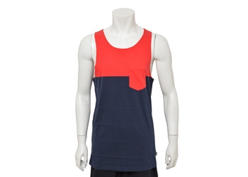┗VANS【バンズ】のメンズアパレル。2013年SPRINGシーズンモデル。2カラーの切替しデザインのカラーブロックのタンクトップ。左胸にポケット付き。
